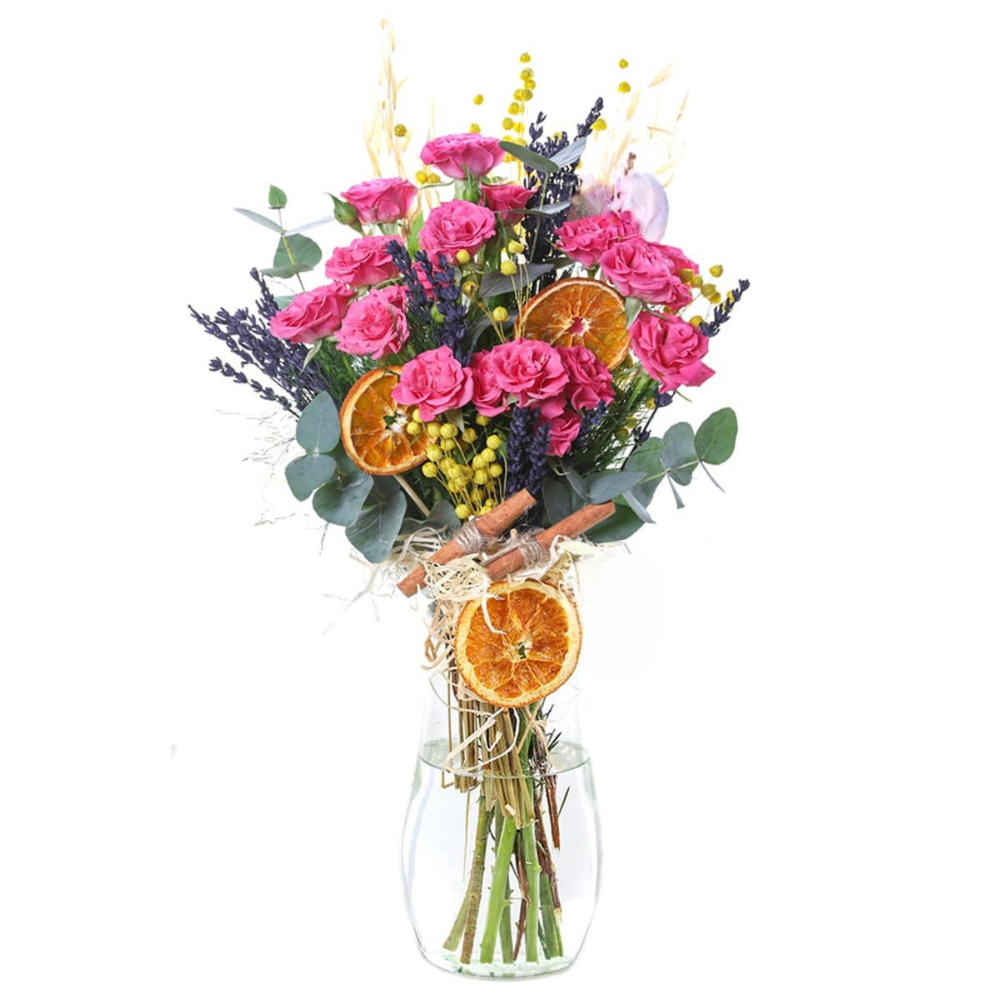 Bloom Charge – Cam Vazoda Karışık Çiçek Aranjmanı