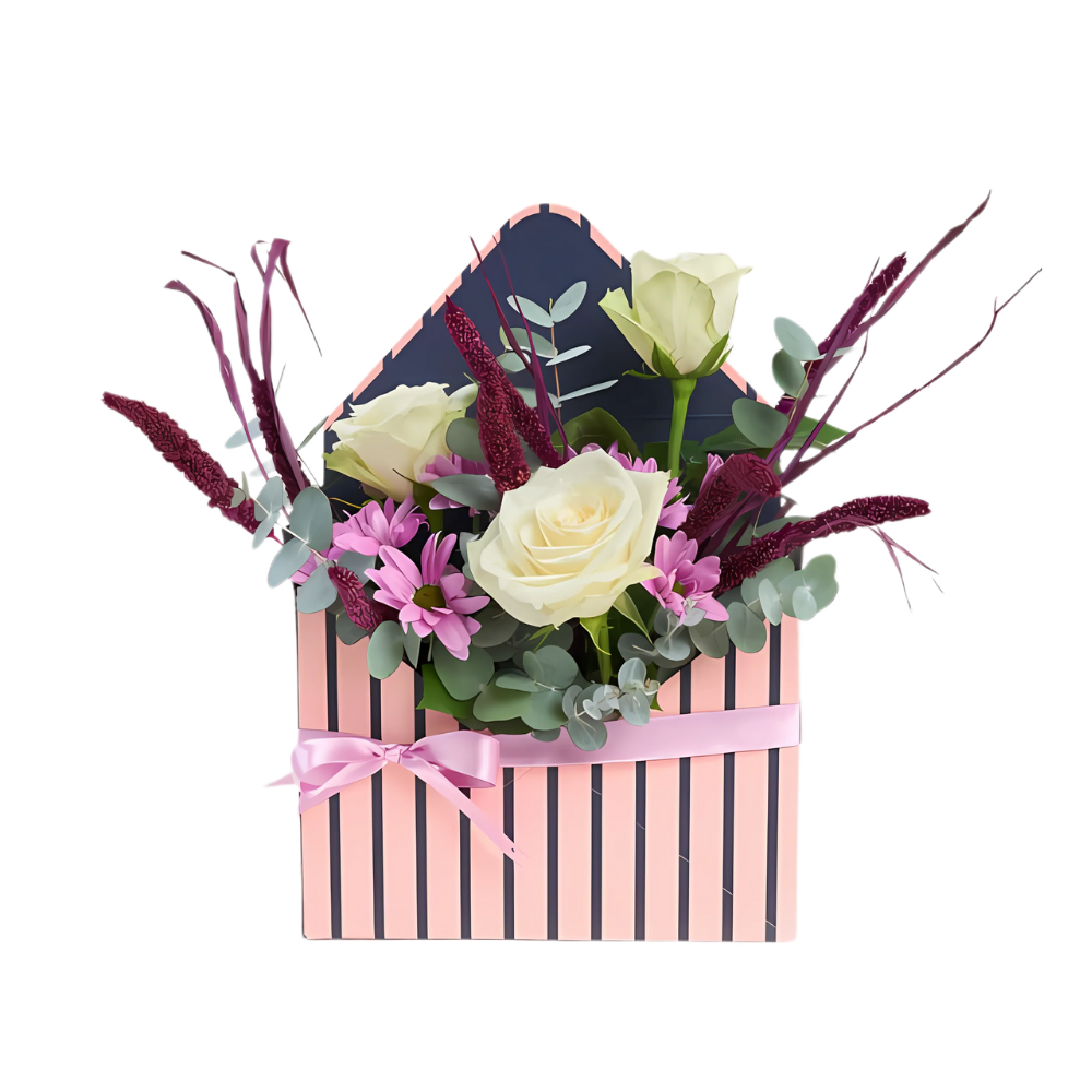 Blush Pop – Mor Zarf Kutuda Papatya ve Beyaz Gül