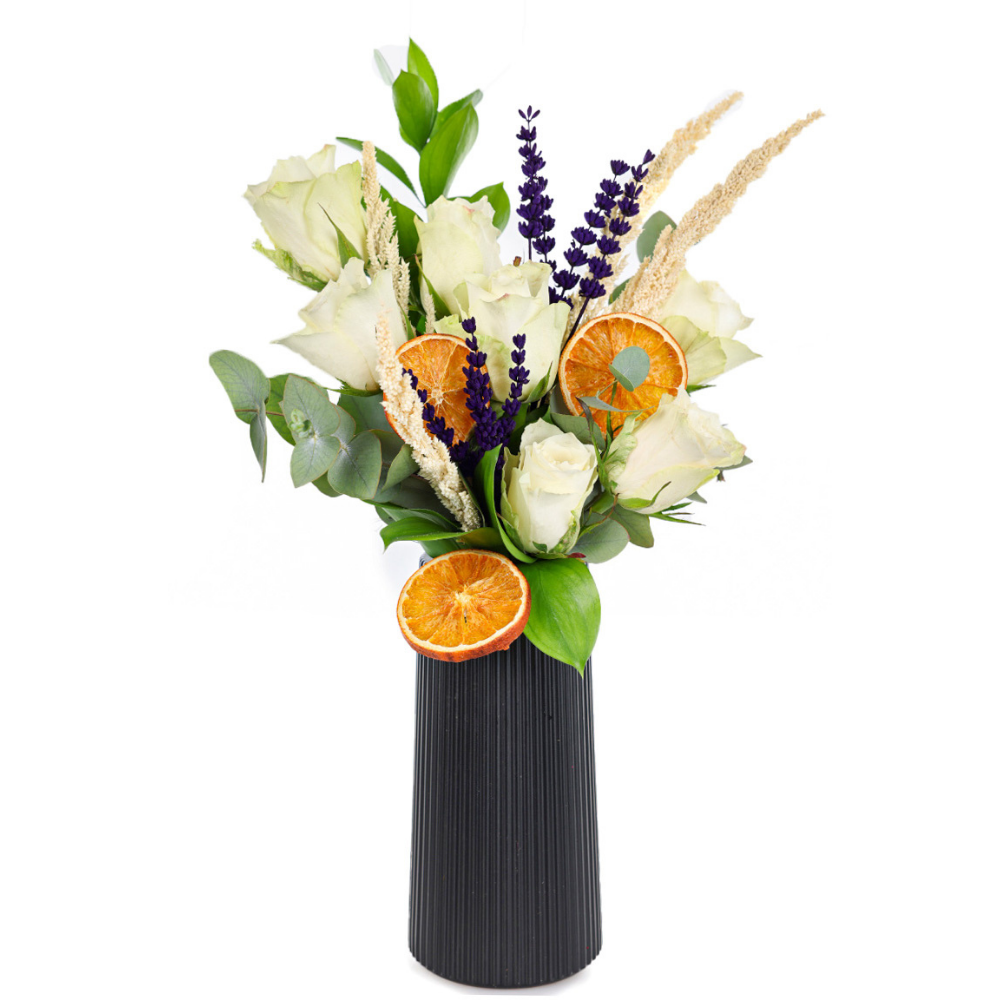 Ivory Touch – Siyah Vazoda Beyaz Güller
