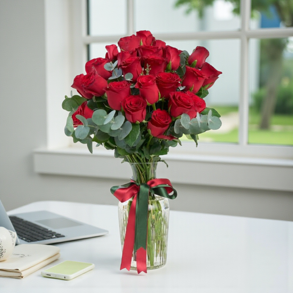 Yoğun duyguların yansıması olan 25 kırmızı gül, premium cam vazoda göz alıcı bir çiçek tasarımına dönüşüyor. Sevgiyi, tutkuyu ve bağlılığı bu özel aranjmanla ifade edin.